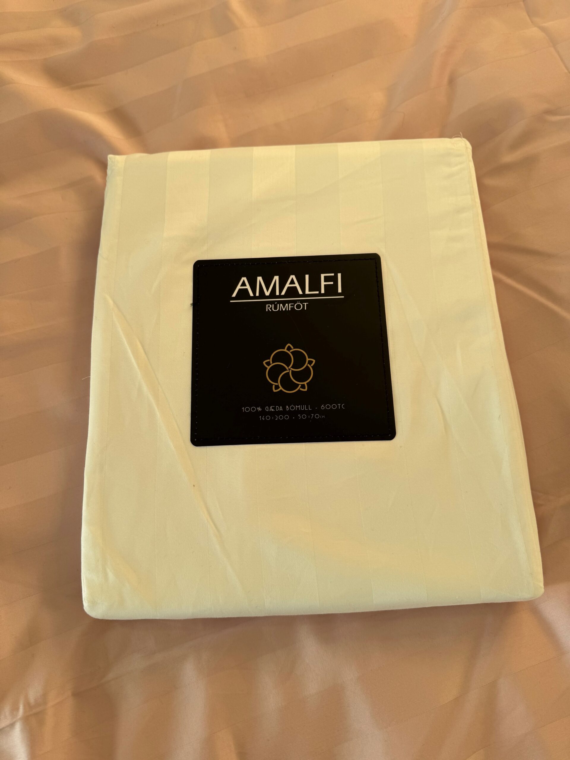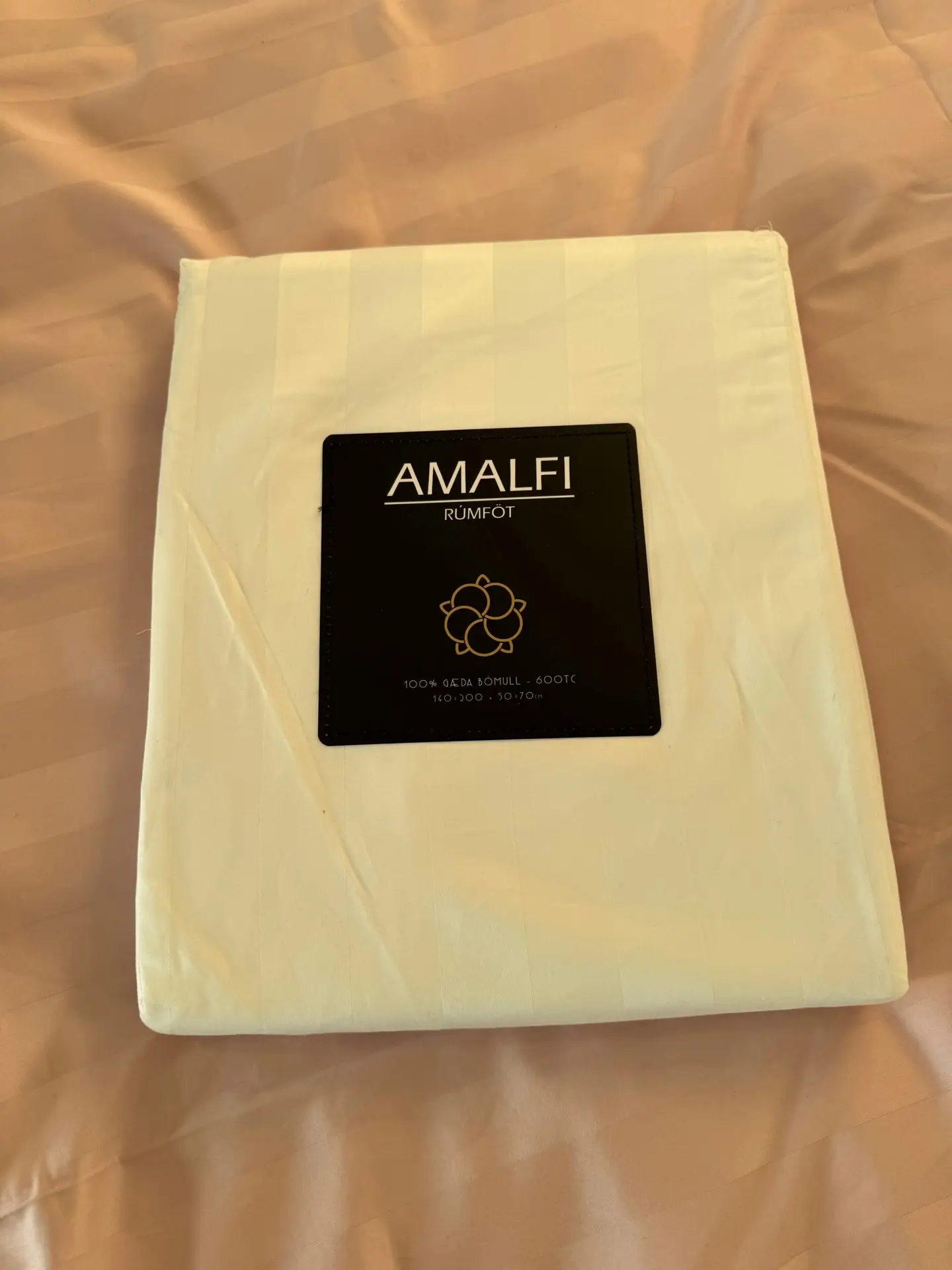 Sexhundruð þráða rúmföt úr 100% bómullardamaski. Lokuð með tölum. Koddaverin eru með 4cm kanti á öllum hliðum.